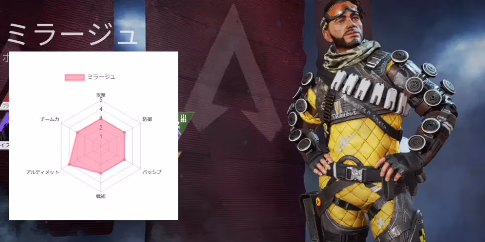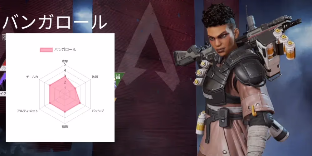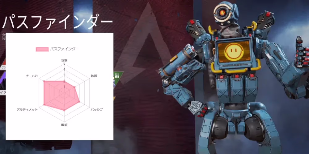 索敵の能力に長けたレジェンド。直接的な攻撃能力ではないのでいかにうまく立ち回るかが重要。